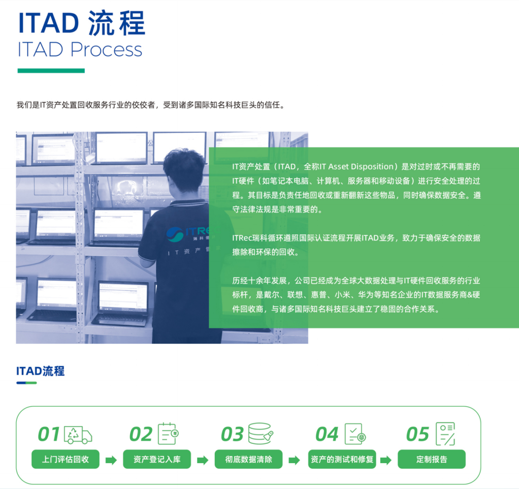 ITRec has 5 major qualification certifications and provides standardized IT asset disposal and recovery services (ITAD, full name IT Asset Disposition).